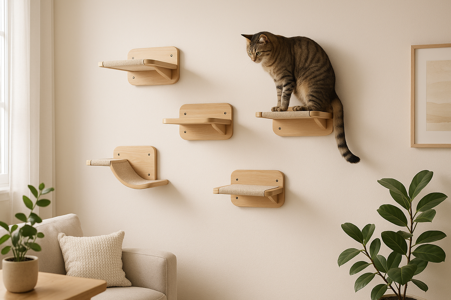 Vertical cat furniture has surged in popularity as indoor cat owners look to maximize space and enrich feline wellbeing through elevated perches. When comparing options, prioritize load-bearing strength and stability so active climbers can jump and rest safely. Material choices—solid wood, durable composites, or carpeted platforms—affect comfort, traction, and longevity. Mounting systems and compatibility with drywall, studs, or masonry determine installation complexity and long-term security. Also weigh modularity, footprint, and aesthetics so the setup complements living space while offering vertical enrichment. Scan the Buyer’s Guide below to compare features, mounting requirements, and design options to find the right wall-mounted cat shelves for your cats.
